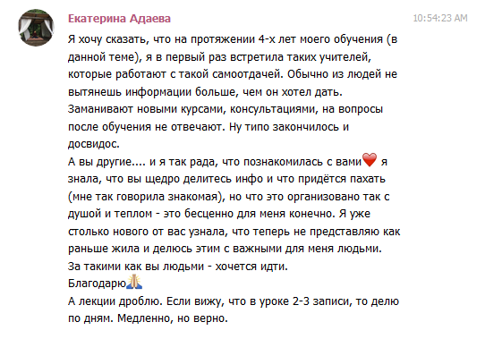Чат взаимоподдержки и обмена опытом в телеграм для участников курса.